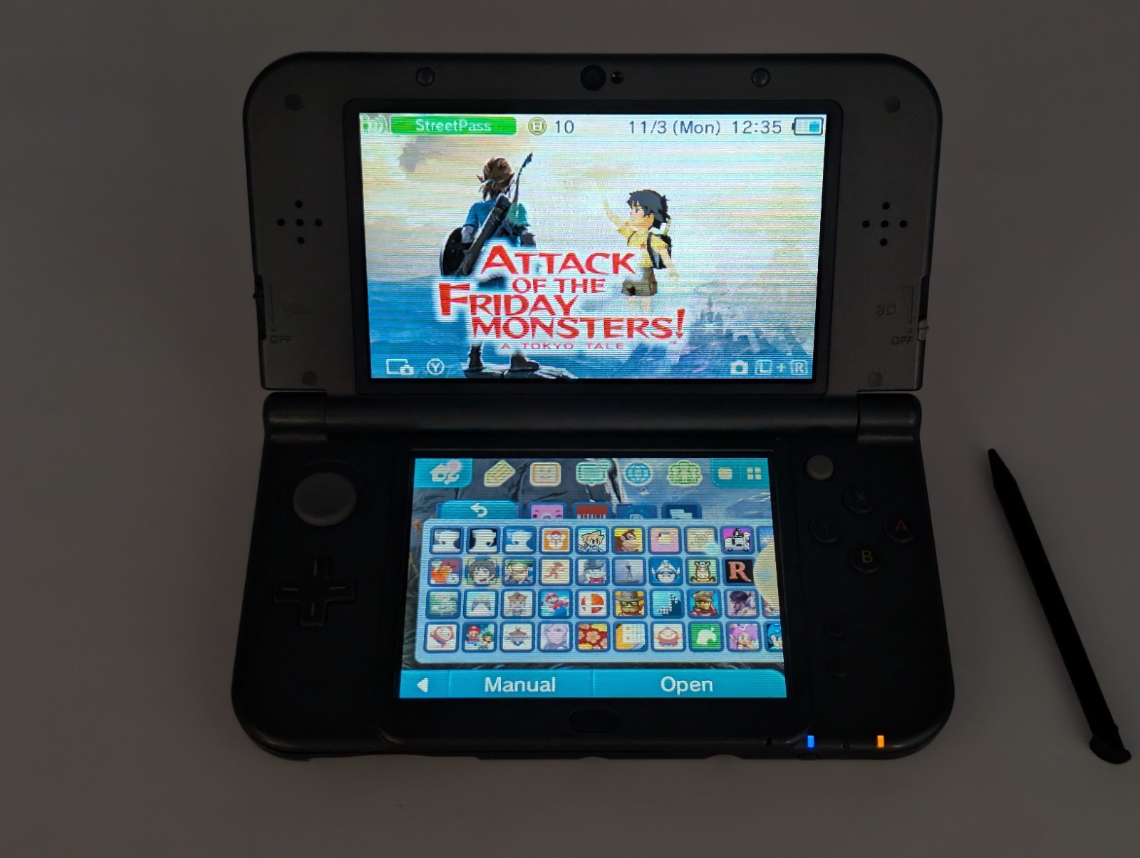 Nintendo New 3DS XL Black in Box w Charger Stylus US Model CIB + 128 GB SD